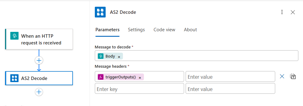 AS2(v2)和 X12作不包含任何触发器。 工作流可以从任何触发器开始,或使用任何动作来接收消息。