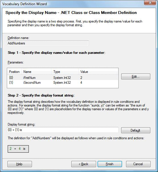 在“步骤 2 - 指定显示格式字符串”下,在“显示格式字符串”属性中输入显示格式字符串。 若要还原为默认的显示格式字符串,请选择“默认”。