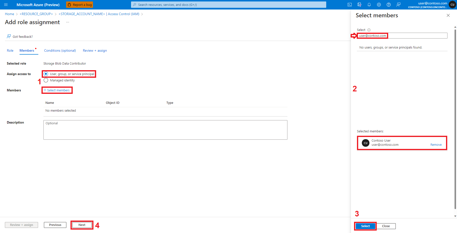 找到并选择角色“存储 Blob 数据参与者”