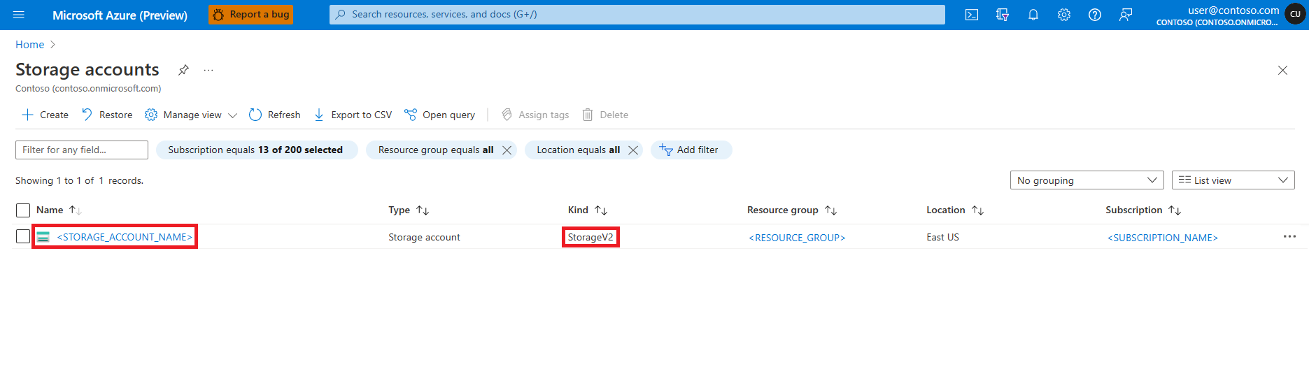 在 Azure 门户中导航到 Azure Blob 存储帐户,如下图所示: