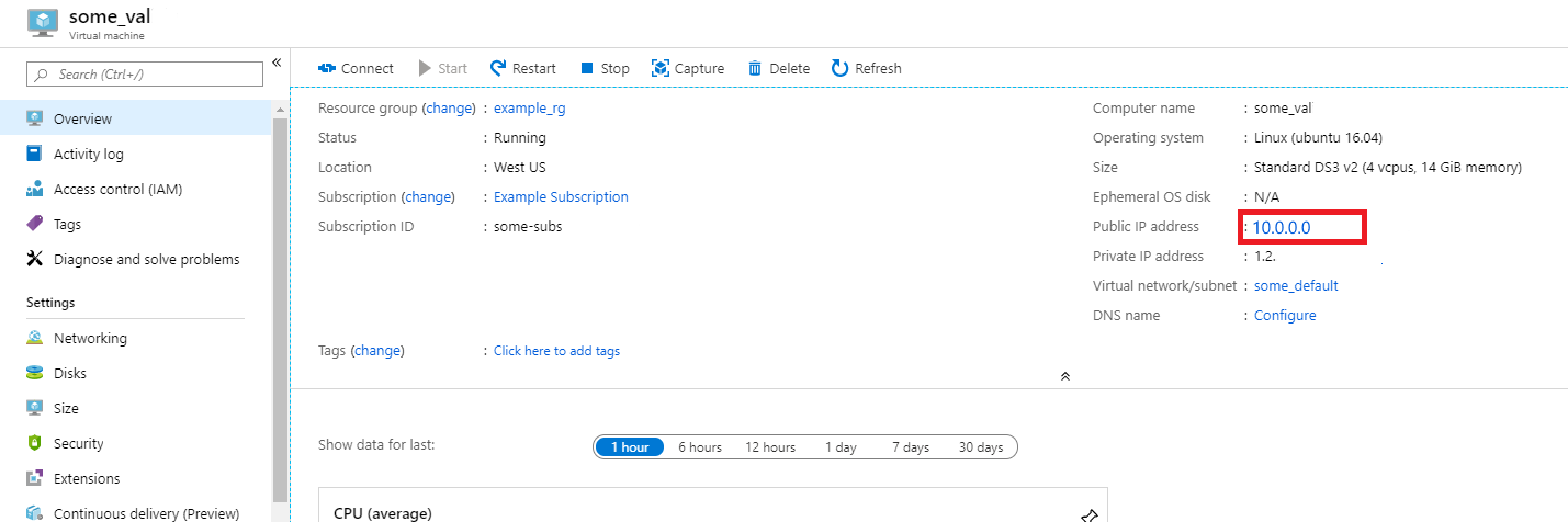 记下 VM 的公共 IP 地址。 在 Azure 门户中,打开创建的虚拟机以查找此信息。