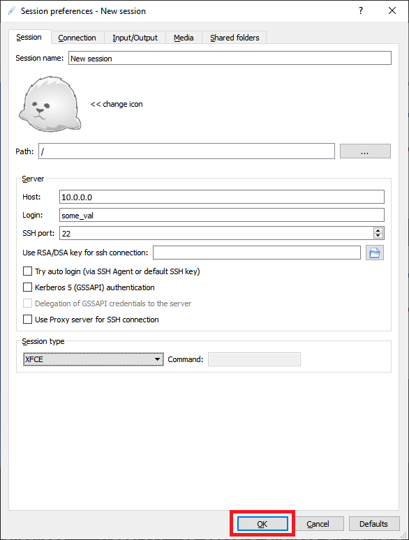 - 会话类型:将值更改为 XFCE。 Linux VM 目前仅支持 XFCE 桌面。