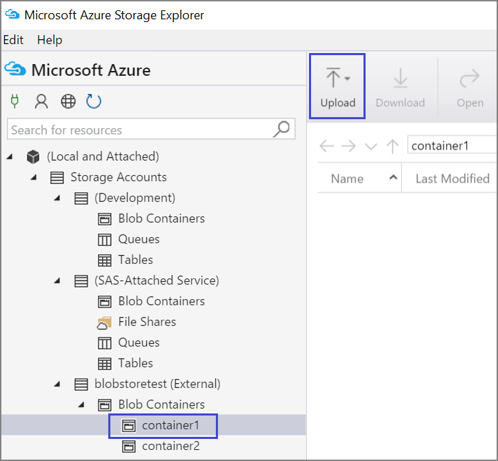 还可以在 VM 中使用 Azure 存储资源管理器上传本地文件中的数据: