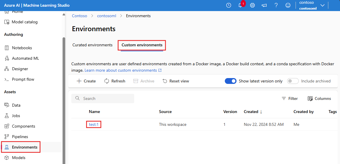 如果为新环境指定的名称与工作区中现有环境的名称相同,则将创建现有环境的新版本。