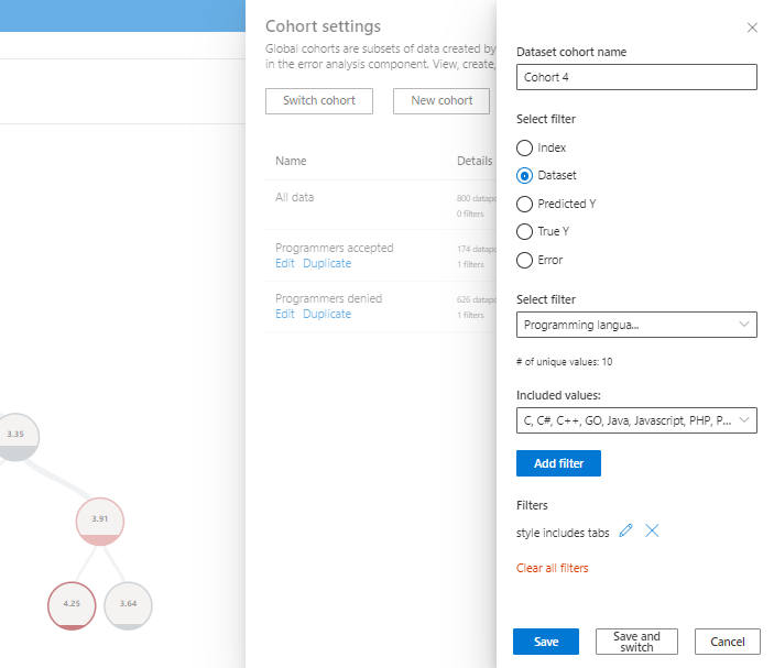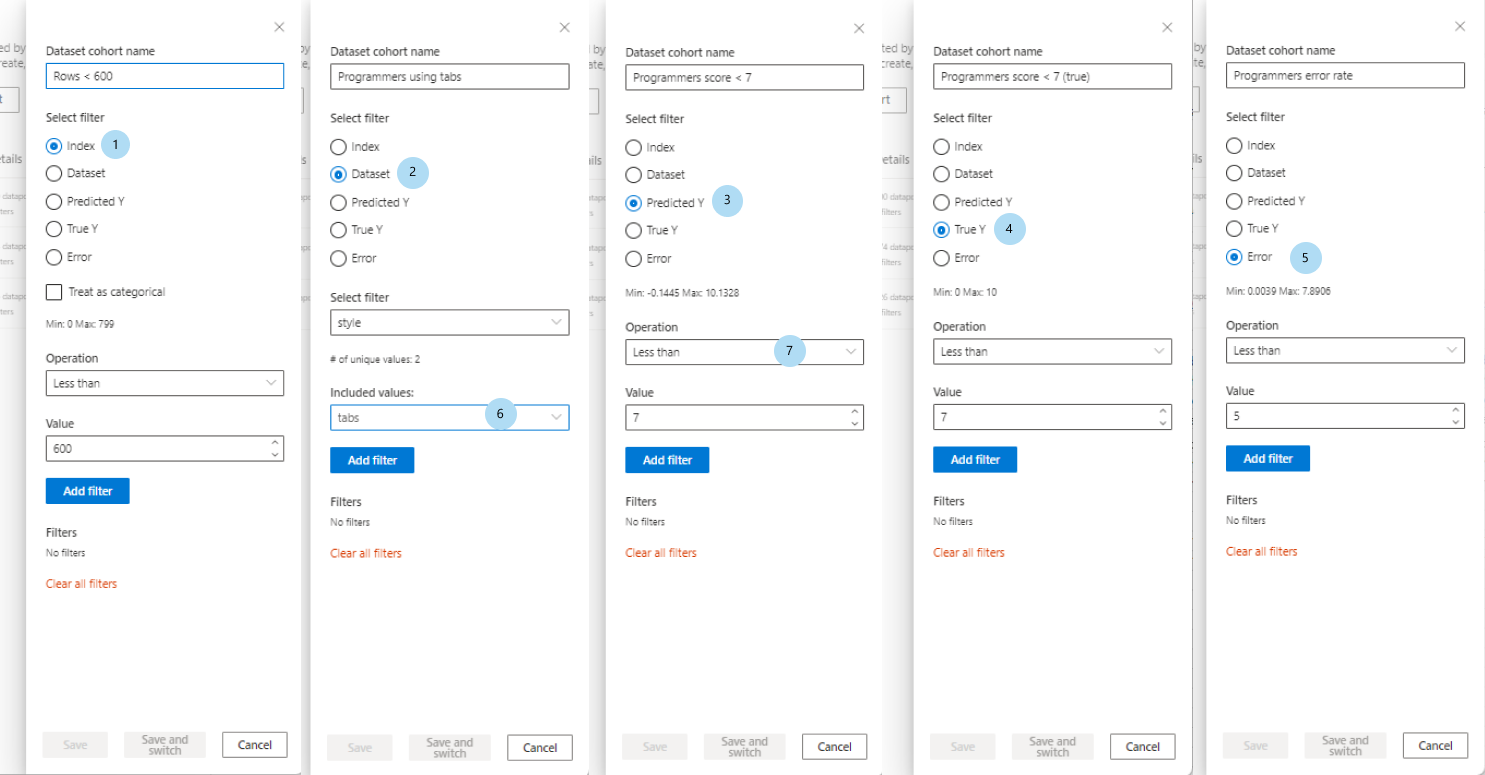 - 错误(回归):按错误筛选(或 分类结果(分类):按分类的类型和准确性进行筛选。