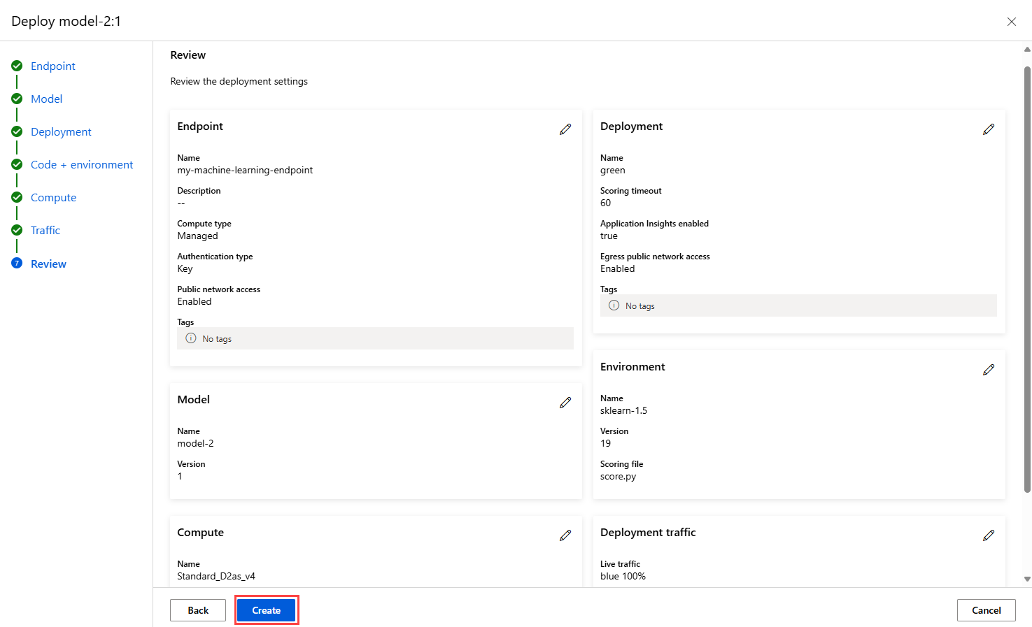 az ml online-deployment create --name green --endpoint-name $ENDPOINT_NAME -f endpoints/online/managed/sample/green-deployment.yml