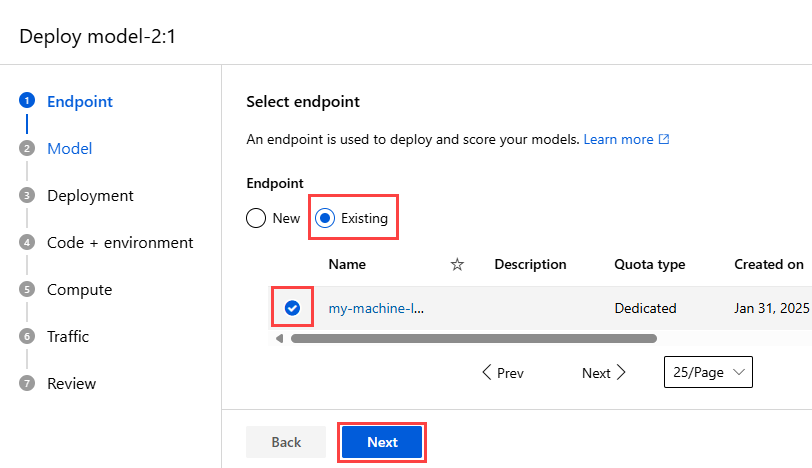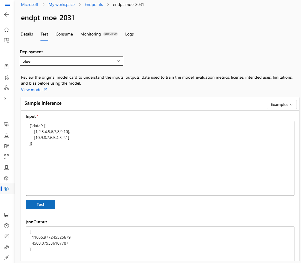 确认现有部署的一种方法是调用终结点,以便它可以就给定输入请求为你的模型评分。 通过 Azure CLI 或 Python SDK 调用终结点时,可以选择指定要接收传入流量的部署的名称。