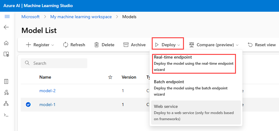 如果不打算使用终结点和部署,请删除它们。 删除终结点时,还会删除其所有基础部署。