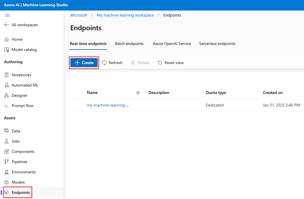 endpoint.yml文件配置终结点:az ml online-endpoint create --name $ENDPOINT_NAME -f endpoints/online/managed/sample/endpoint.yml
