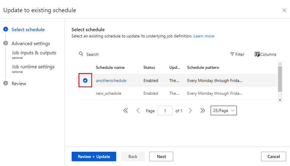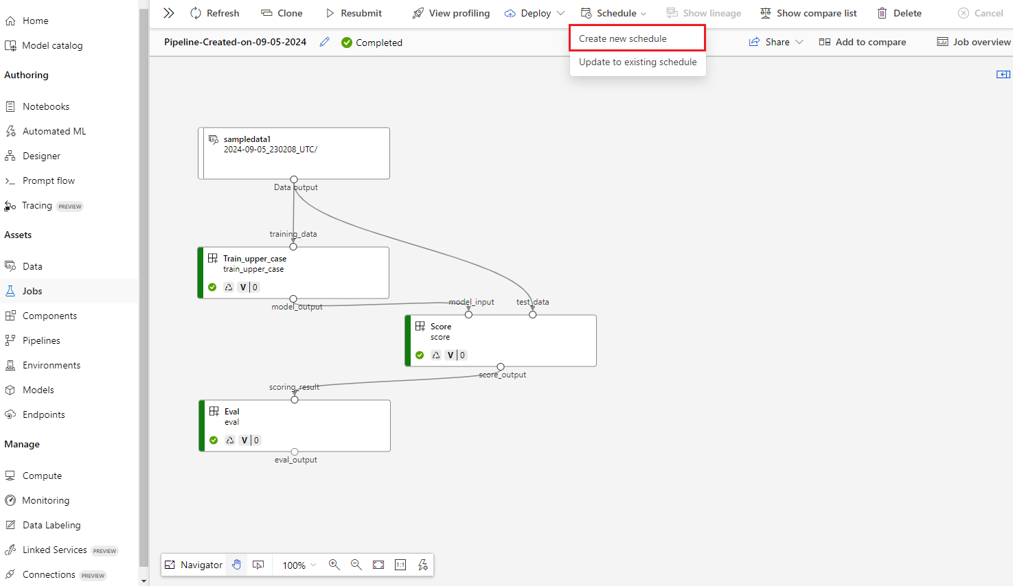 可以使用工作室 UI、SDK v2 或 CLI v2 为 v2 或 v1 管道作业创建 v2 计划。 无需首先发布现有管道即可为管道作业设置计划。