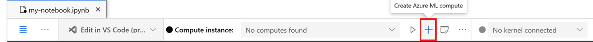 在打开的笔记本上方的顶部栏中,创建一个计算实例(如果还没有计算实例)。