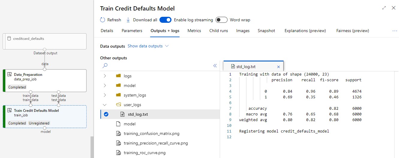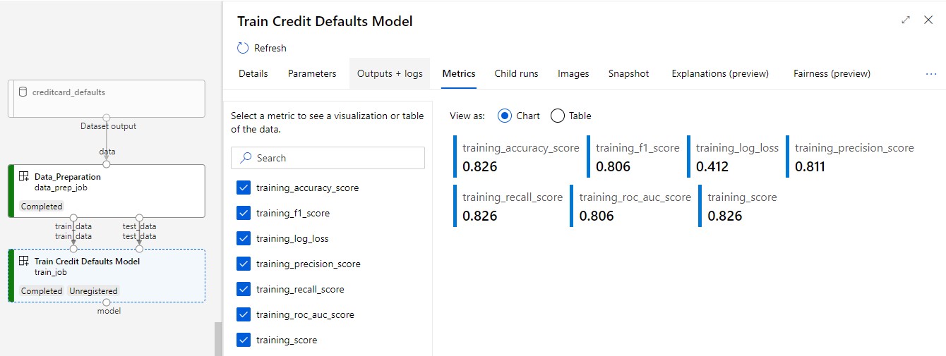 完成后,管道会在工作区中注册模型,这是训练的结果。