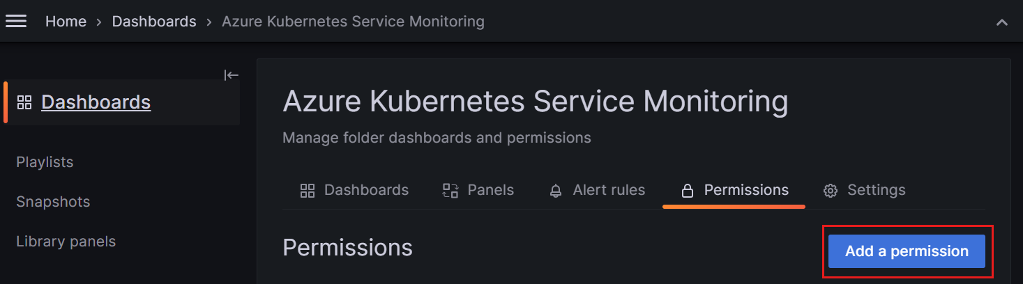 Microsoft Entra 组同步可帮助你管理此配置。 借助该功能,你可以在 Grafana 工作区中创建 Grafana 团队,将其链接到 Microsoft Entra 组,然后为该团队配置仪表板权限。 例如,你可以允许 Grafana 查看者修改仪表板,或阻止 Grafana 编辑者进行更改。