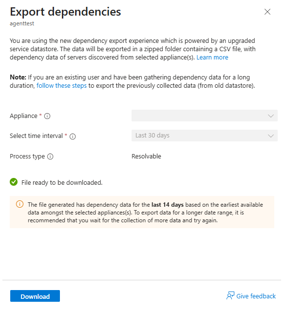 为无代理依赖项分析启用服务器后,设备每隔 5 分钟从服务器收集依赖项数据。 然后,每隔六小时发送一个合并的数据点。 可以在分析期间查看设备收集的数据。