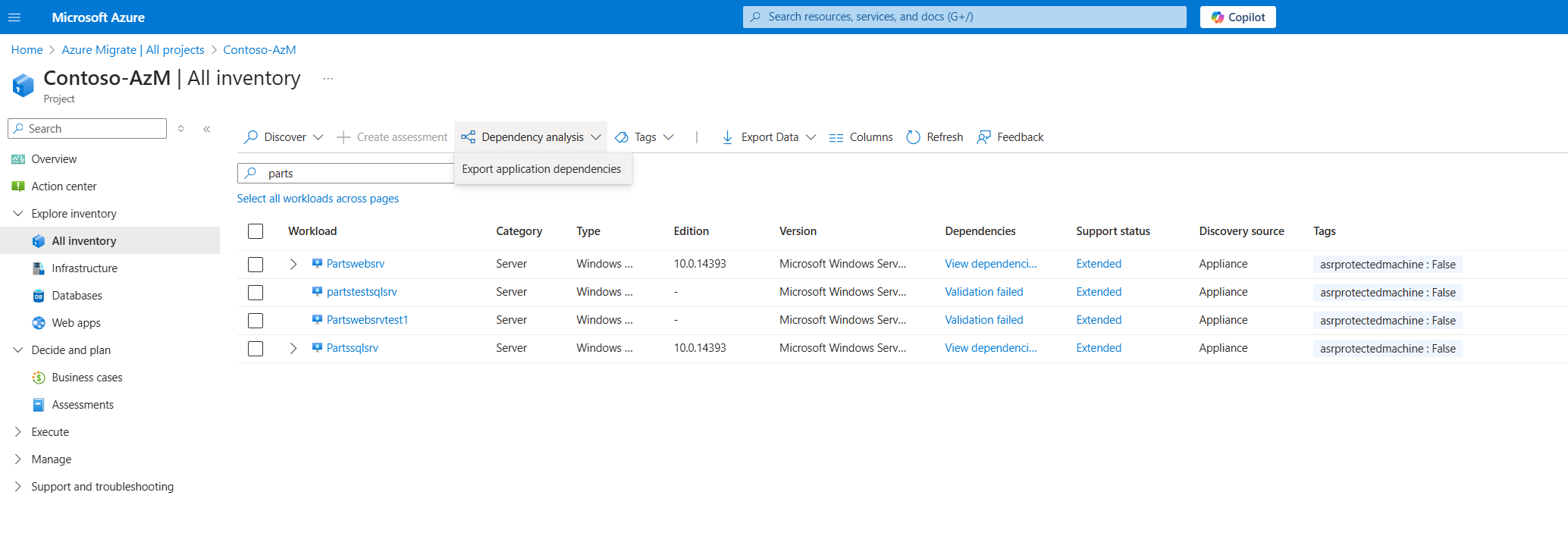 • 依赖性分析会在每个通过先决条件检查的 Azure Migrate 工具发现的 1,000 台服务器上自动运行。 无需再手动启用它。