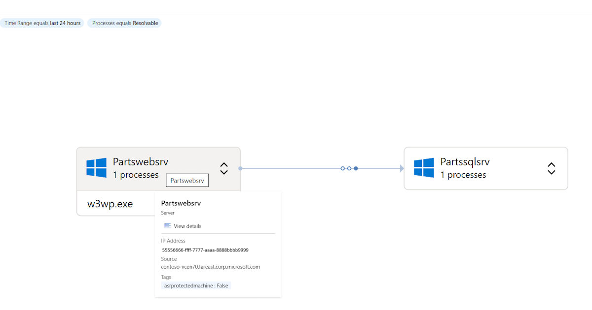 • 增强的依赖项可视化有助于查看有关服务器、连接和进程的其他信息。 可以按进程类型筛选视图,以分析可视化效果中的关键依赖项。
