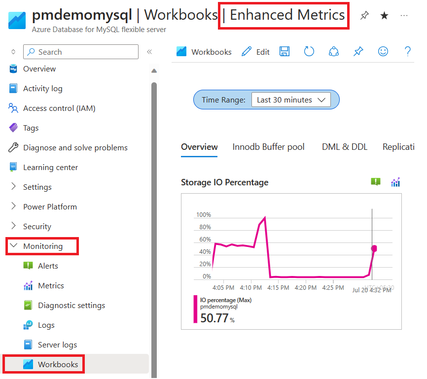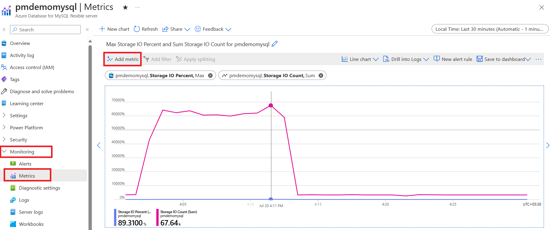 可以使用可用于 Azure Database for MySQL - 灵活服务器的指标来监视存储 IOPS 利用率。