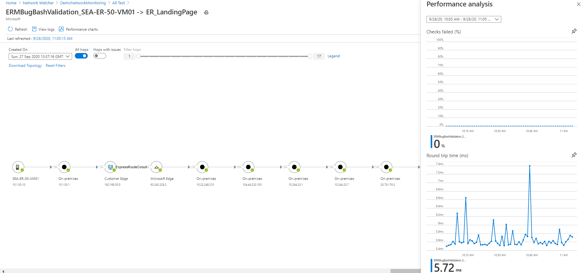 - 您想要检查本地部署与托管云应用程序的 Azure 虚拟机或规模集之间的连接。