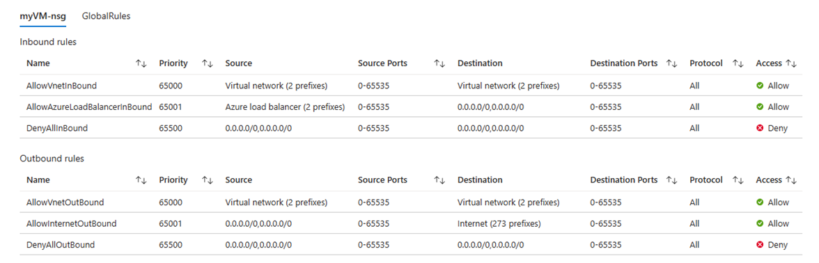 应用到网络接口的生效安全规则是网络接口所关联的网络安全组和网络接口所在子网的安全规则的一个组合。 有关详细信息,请参阅网络安全组和网络安全组如何筛选网络流量。 此外,有效的安全规则包括使用 Azure Virtual Network Manager 应用于虚拟网络的管理员规则。 有关详细信息,请参阅 Azure Virtual Network Manager。