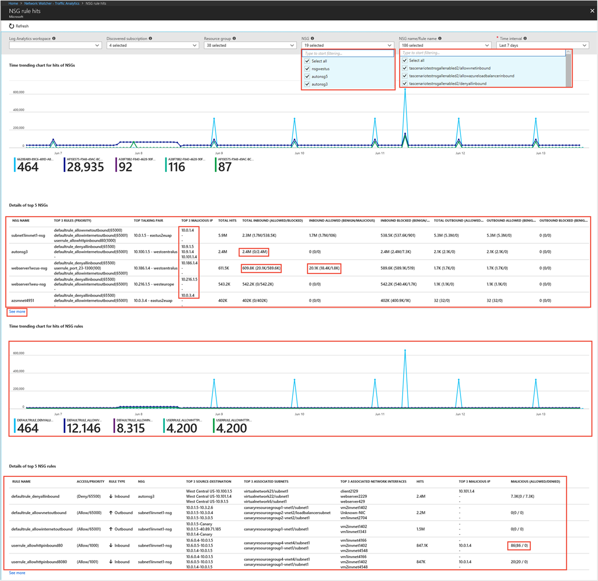 可视化网络安全组 (NSG)/NSG 规则命中趋势