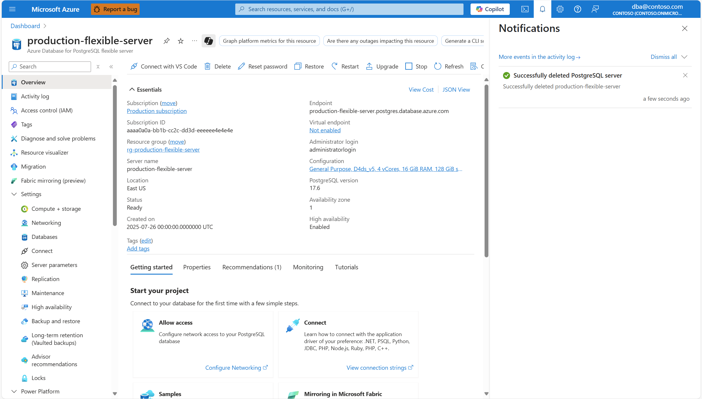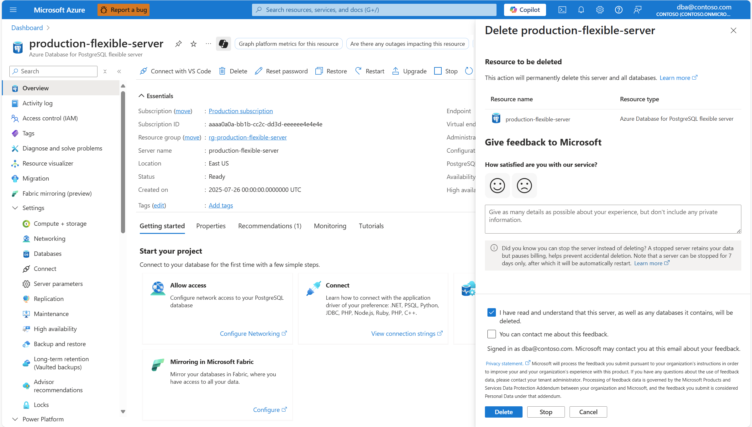 本文提供删除 Azure Database for PostgreSQL 灵活服务器实例的分步说明。