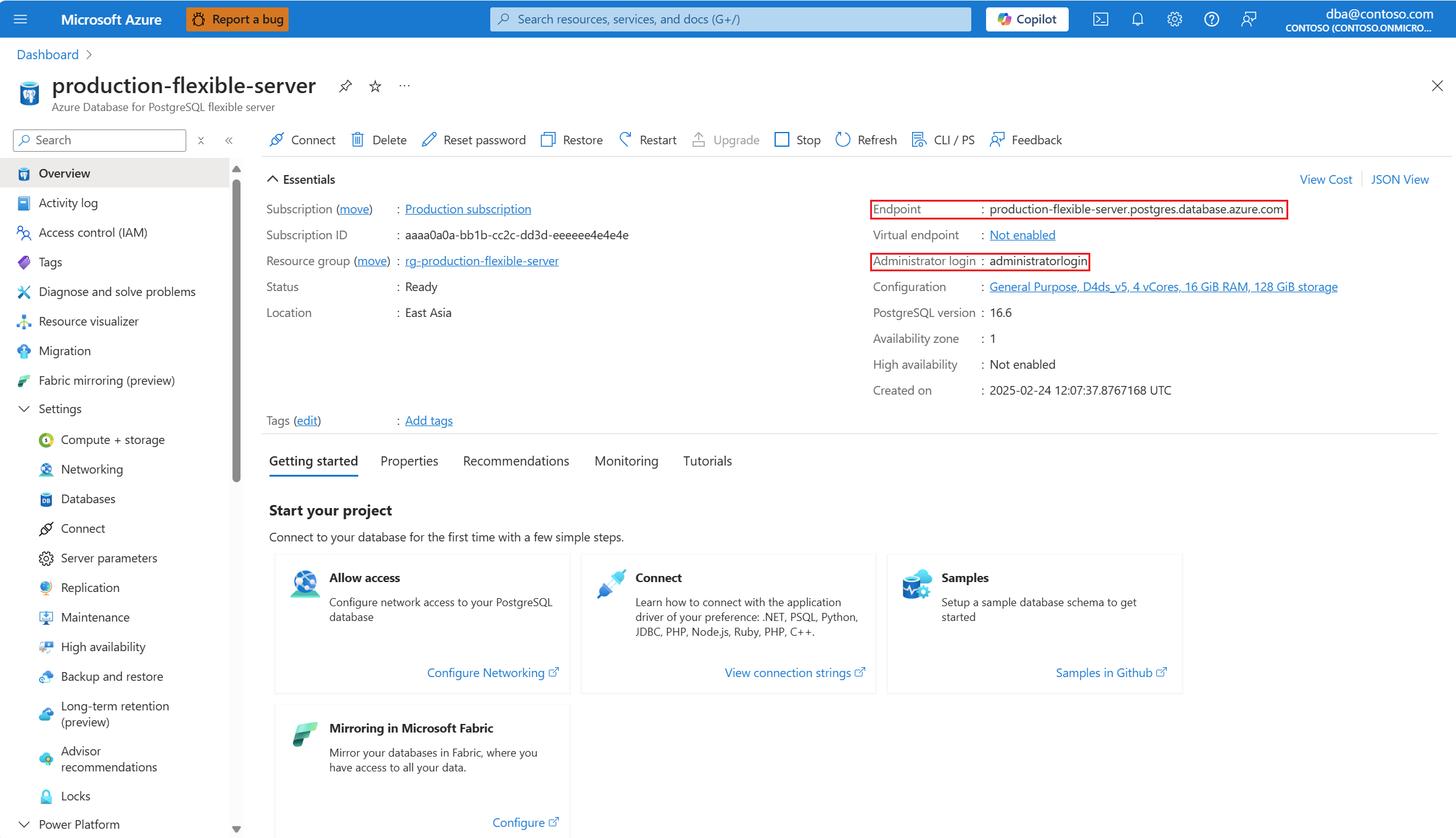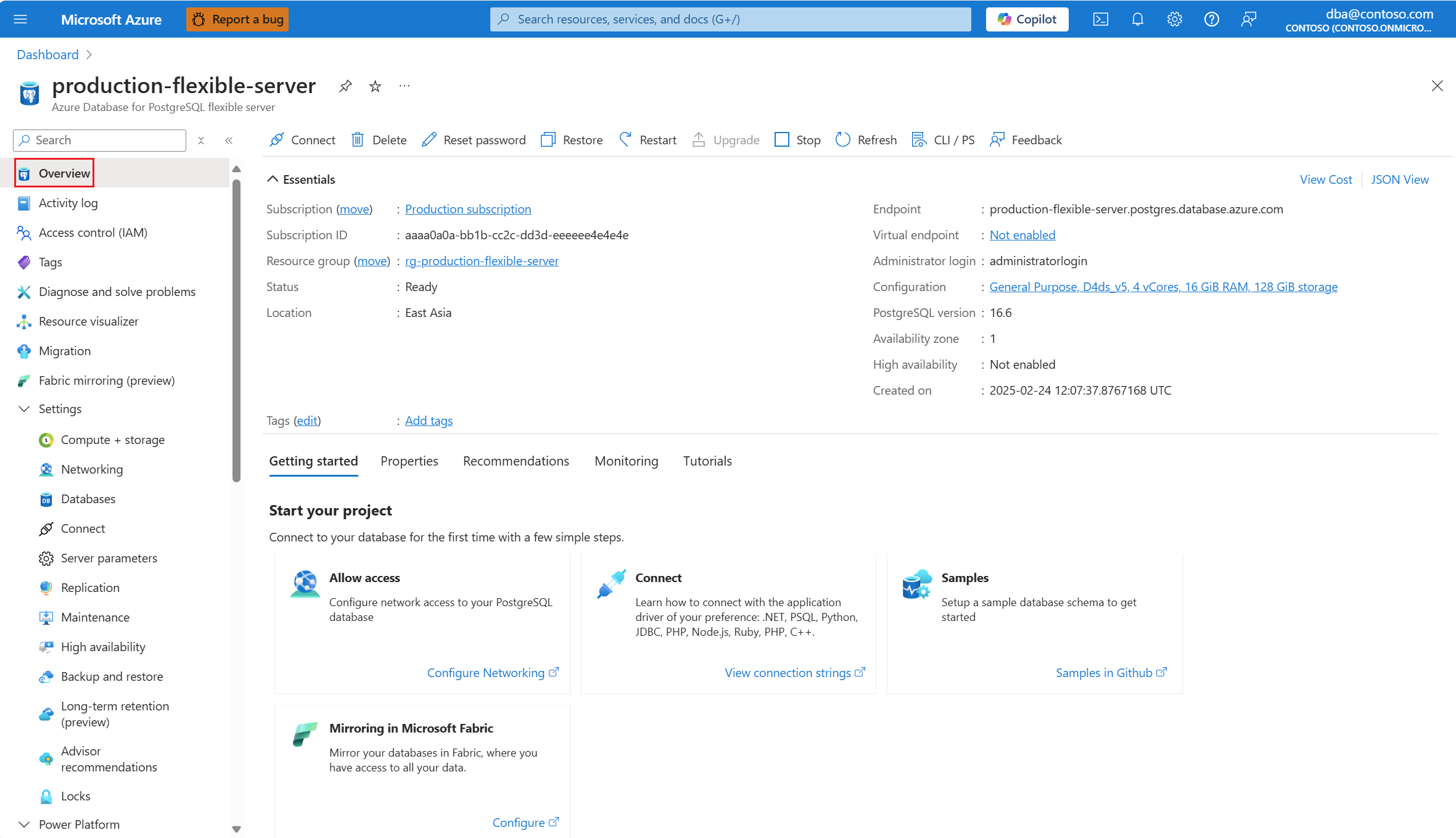 - 在 Azure 门户中,搜索并选择 Azure Database for PostgreSQL 灵活服务器实例名称。