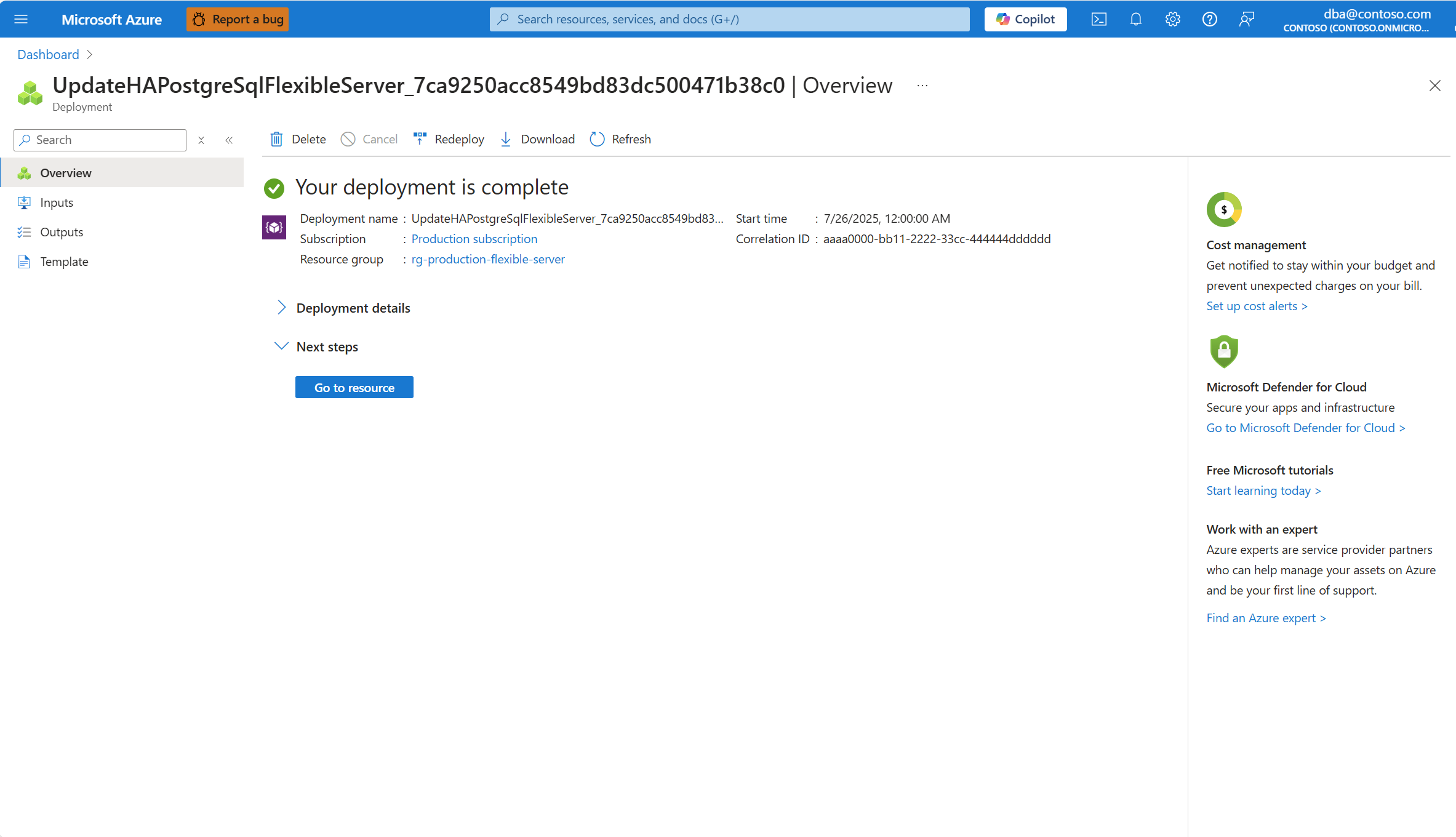 6. 部署开始。 完成后,会出现一条通知,表明你已成功启用高可用性。
