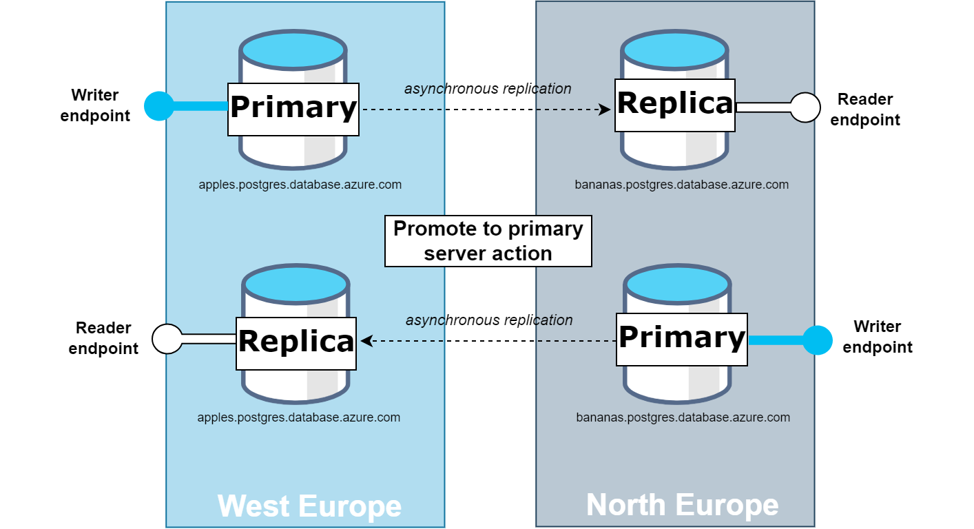 此操作将副本提升为主服务器的角色。 在此过程中,当前主服务器将降级为副本角色,两者的角色将会交换。 若要成功提升,必须为当前主服务器配置一个虚拟终结点作为写入终结点,为要升级的副本配置一个虚拟终结点作为读取终结点。 仅当目标副本包含在读取方终结点配置中时,提升才会成功。