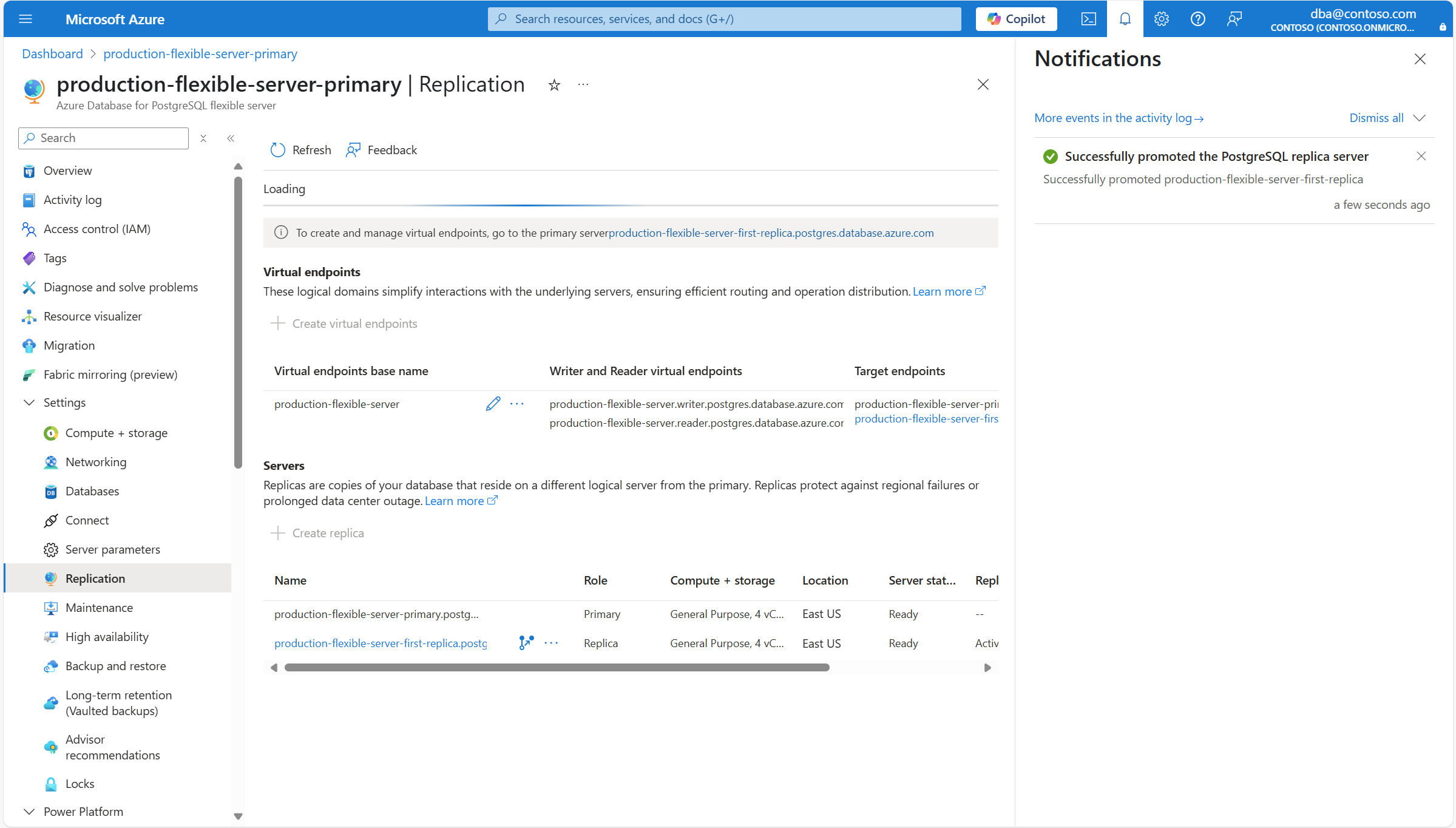 该过程完成后,通知会通知你只读副本已成功切换到主副本。