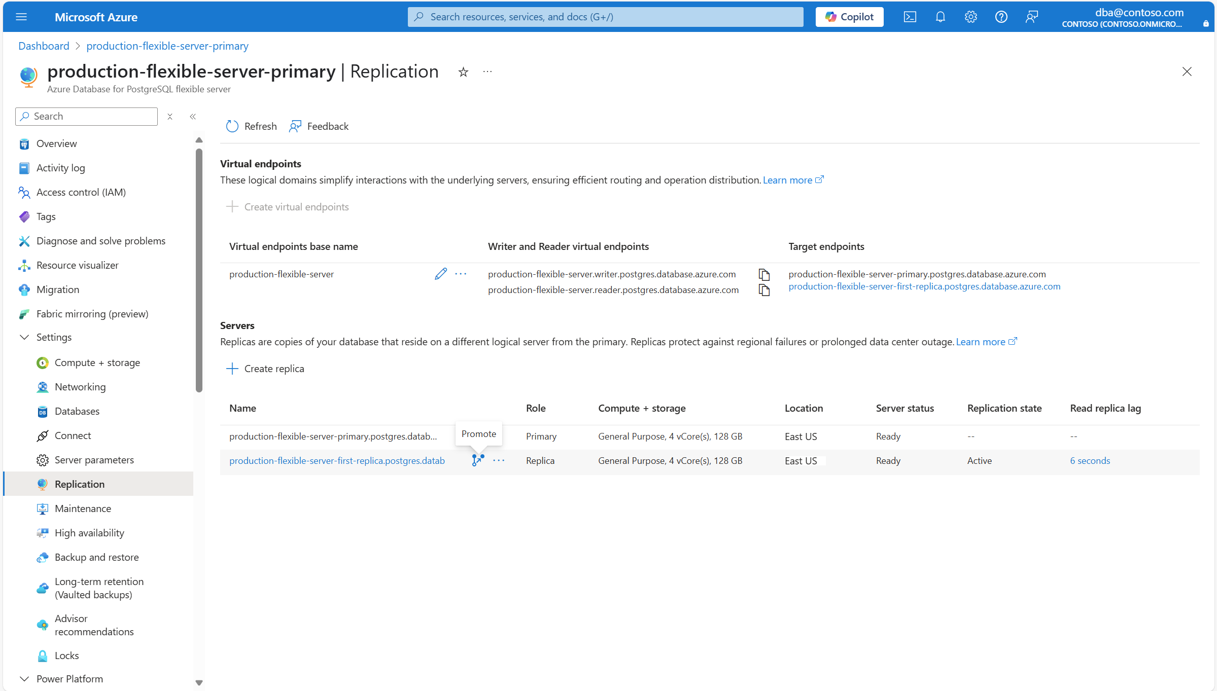 选择要切换到的只读副本终结点名称的一侧的“提升”图标。