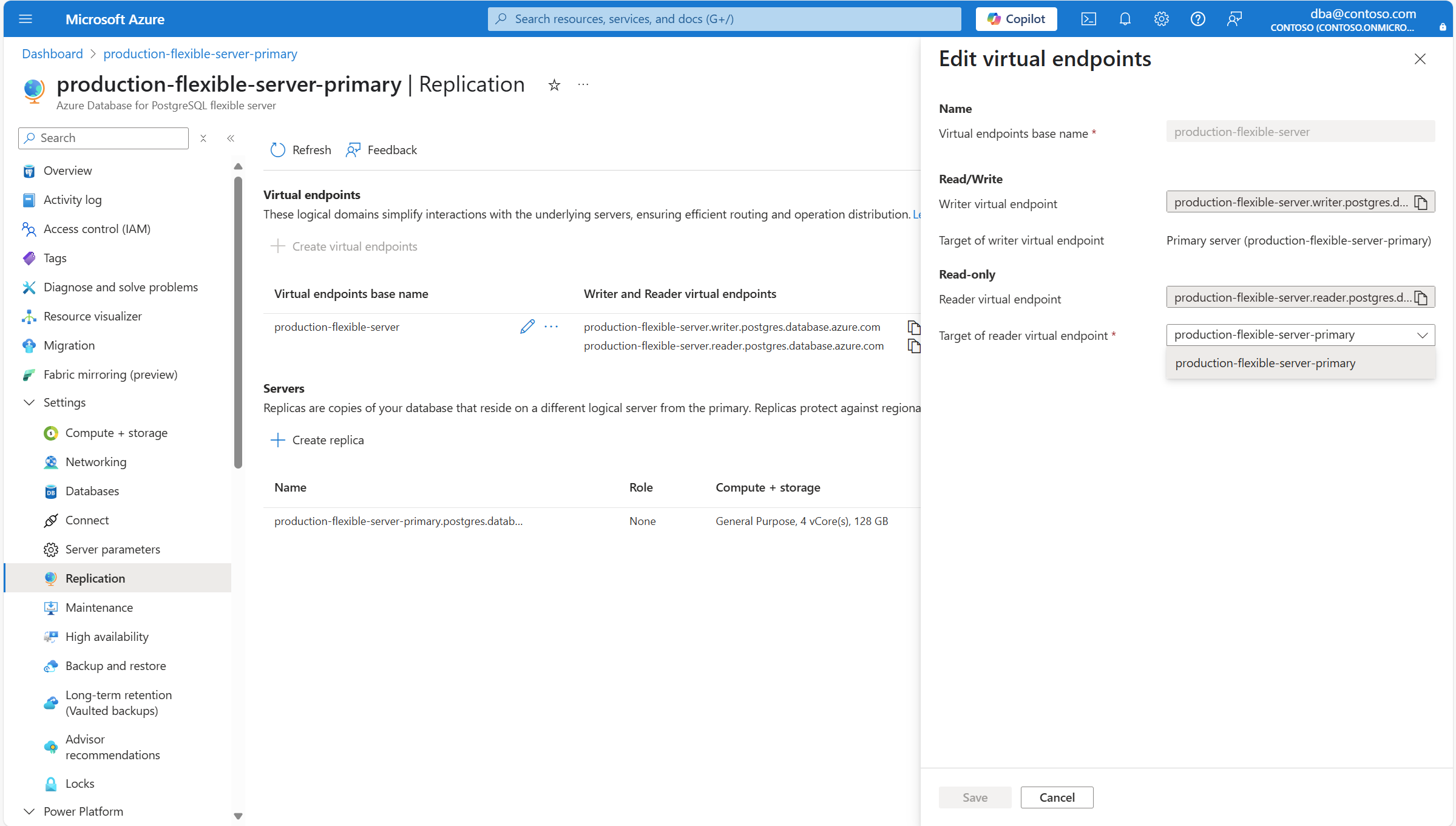 如果服务器有读取副本,并且更改 读取器虚拟终结点的目标 值,选择 保存 以保留更改。