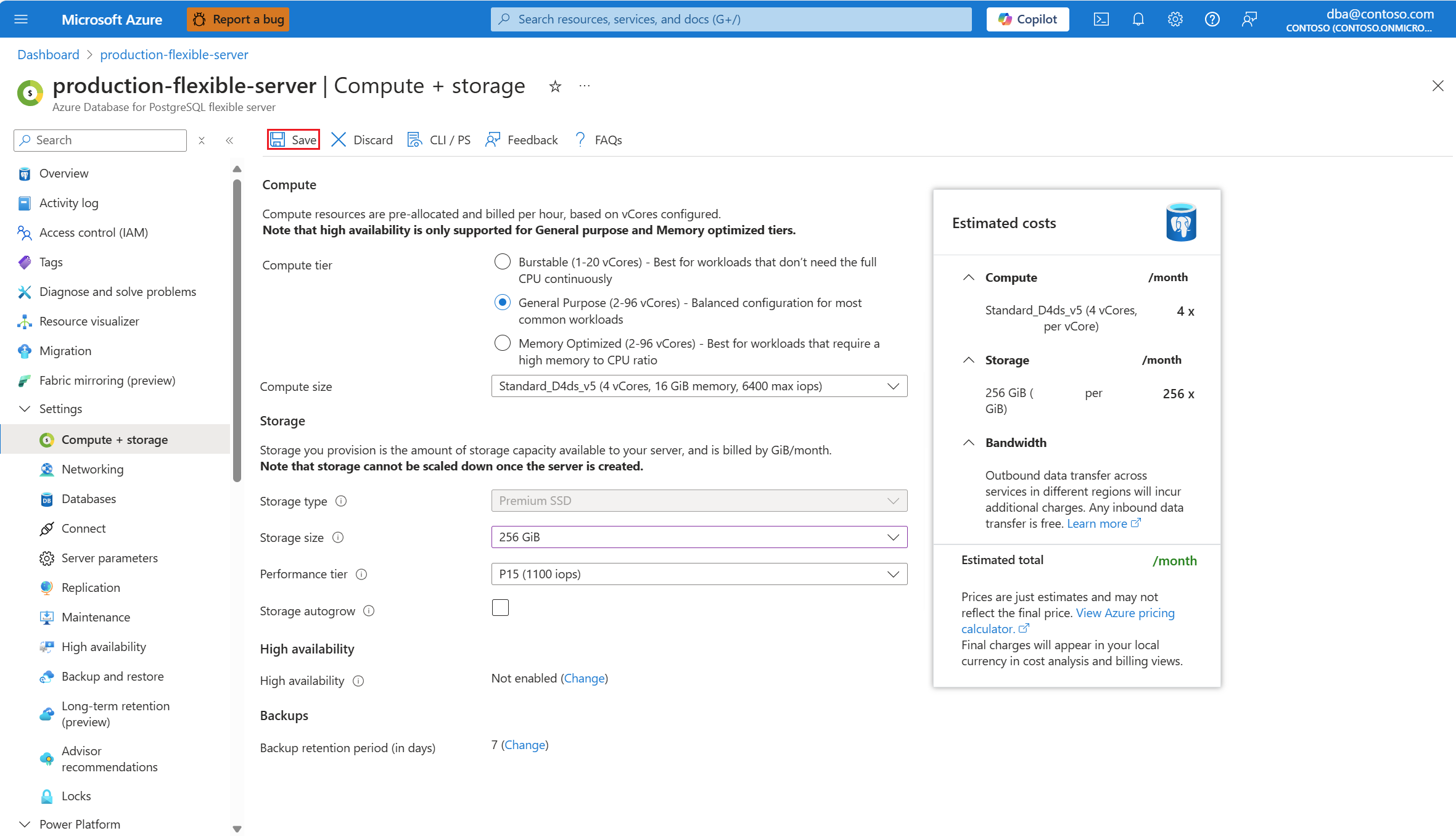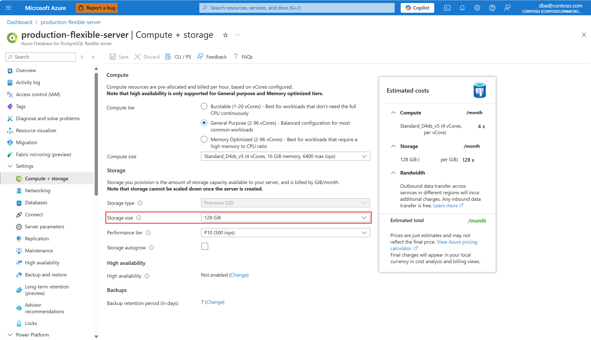 无论使用手动还是自动方法,都只能增加分配给 Azure Database for PostgreSQL 灵活服务器的存储大小。 不支持减小存储的大小。