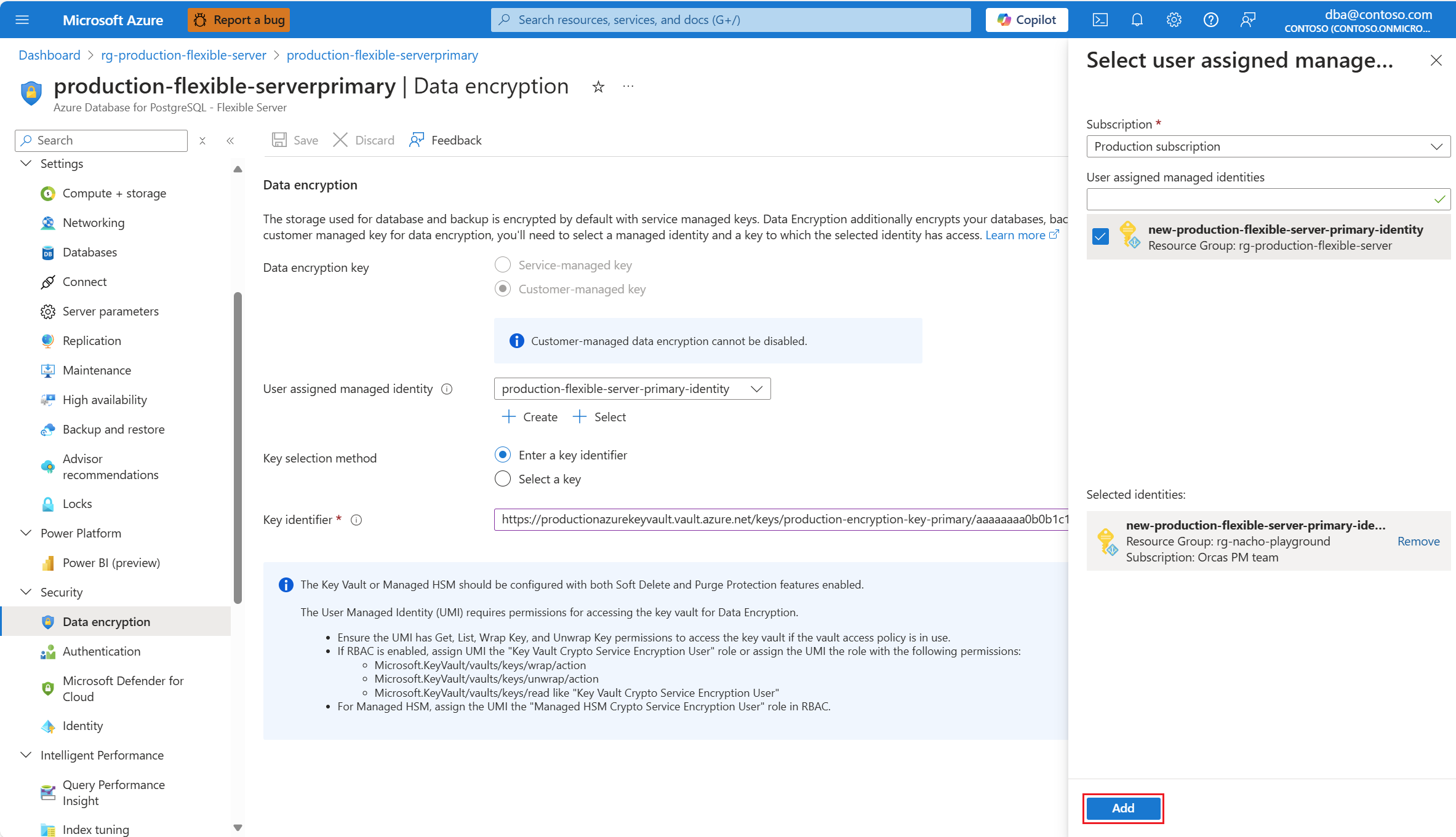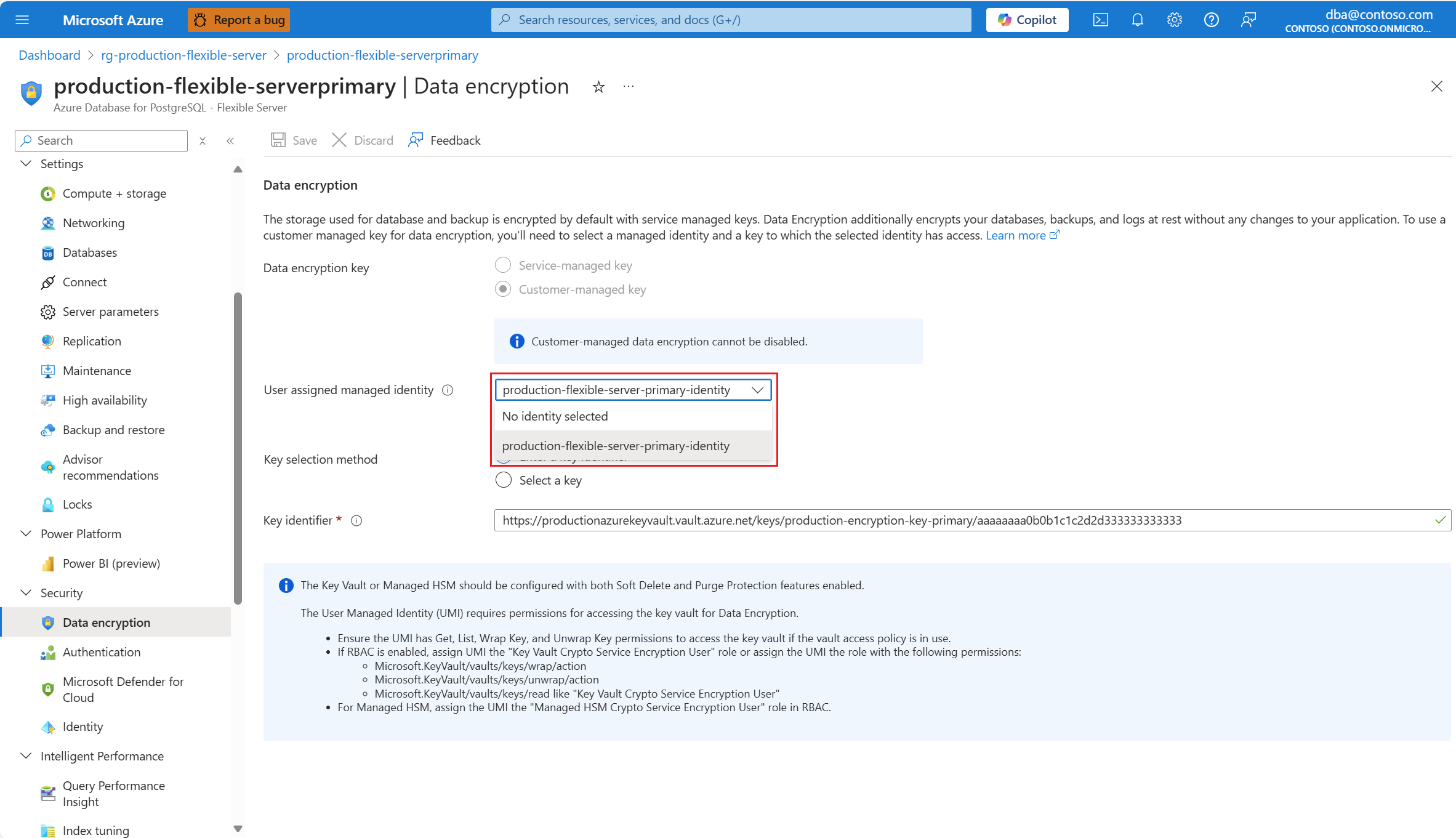 必须更新 Azure Database for PostgreSQL 灵活服务器实例使用的用户分配的托管标识,以便在使用其他标识时访问加密密钥。