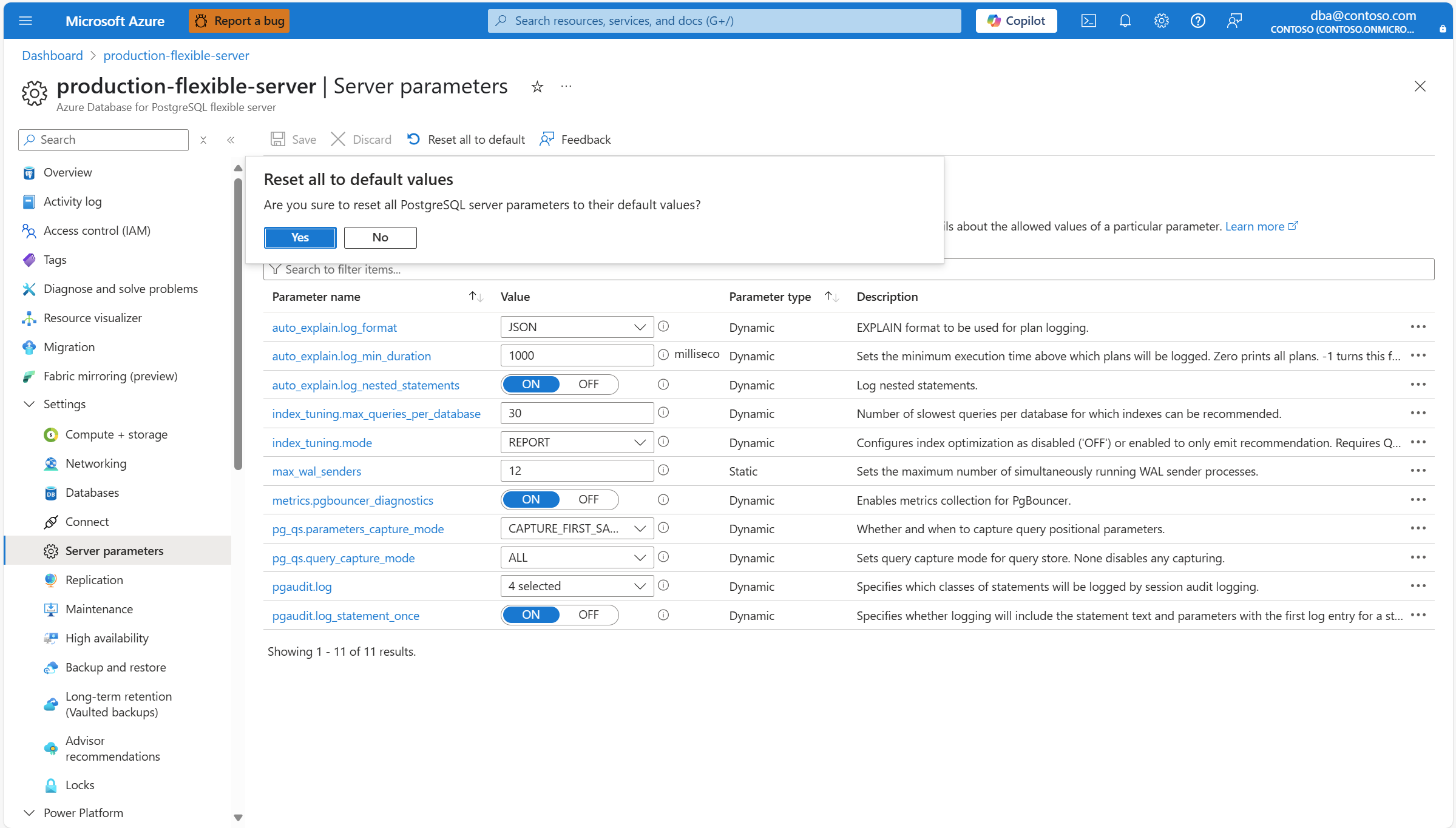 如果要将所有修改的服务器参数重置为其默认值,请在“全部重置为默认值”对话框中确认该操作。