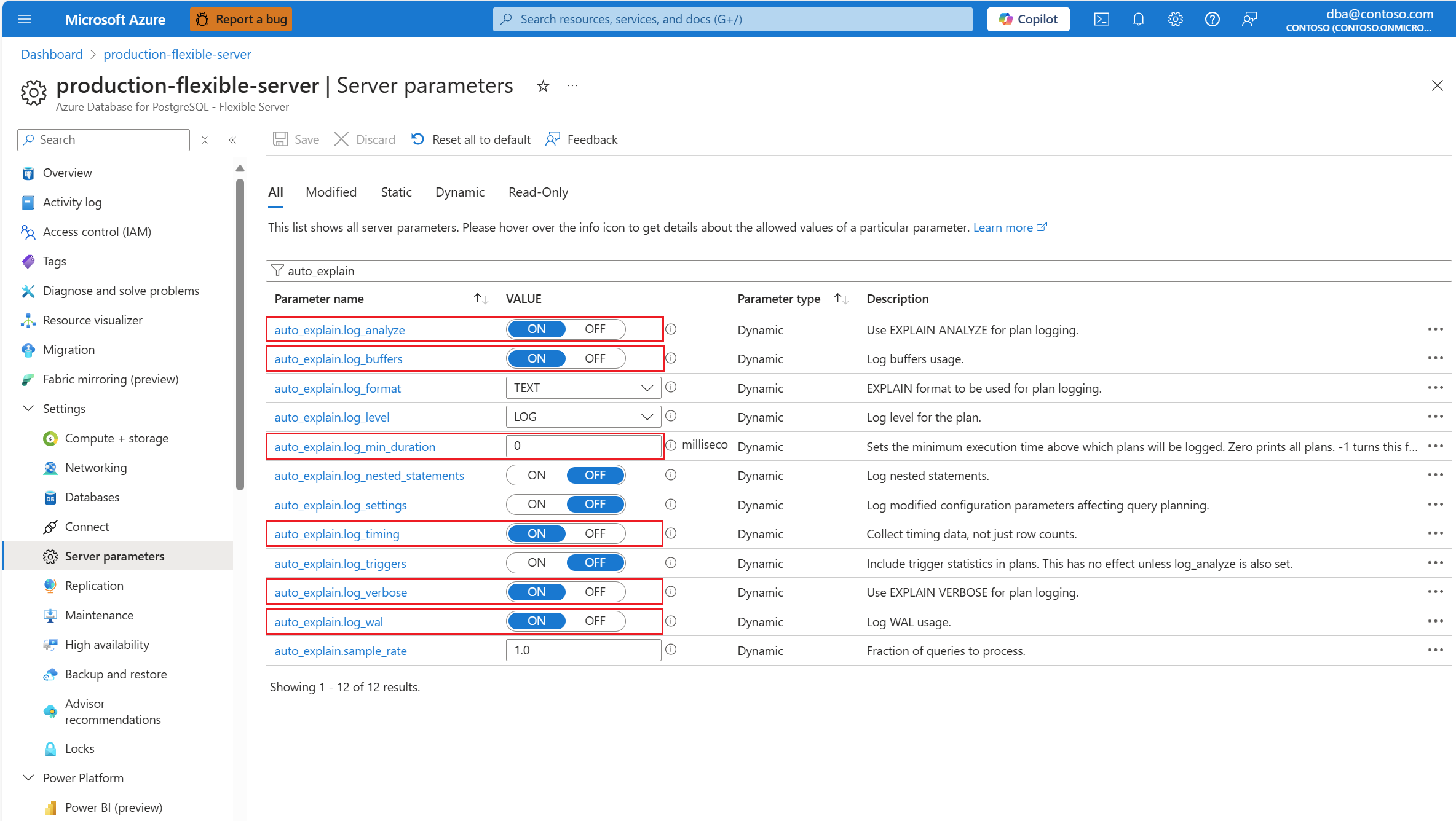 - 若要了解生成的确切说明计划,请使用 Azure Database for PostgreSQL 日志。 每次查询在该时间窗口内完成执行时,