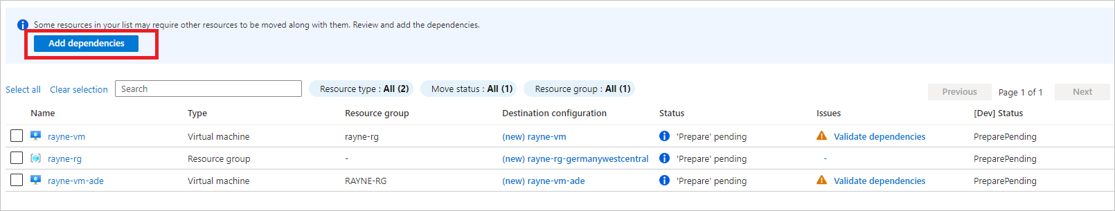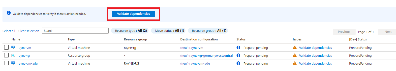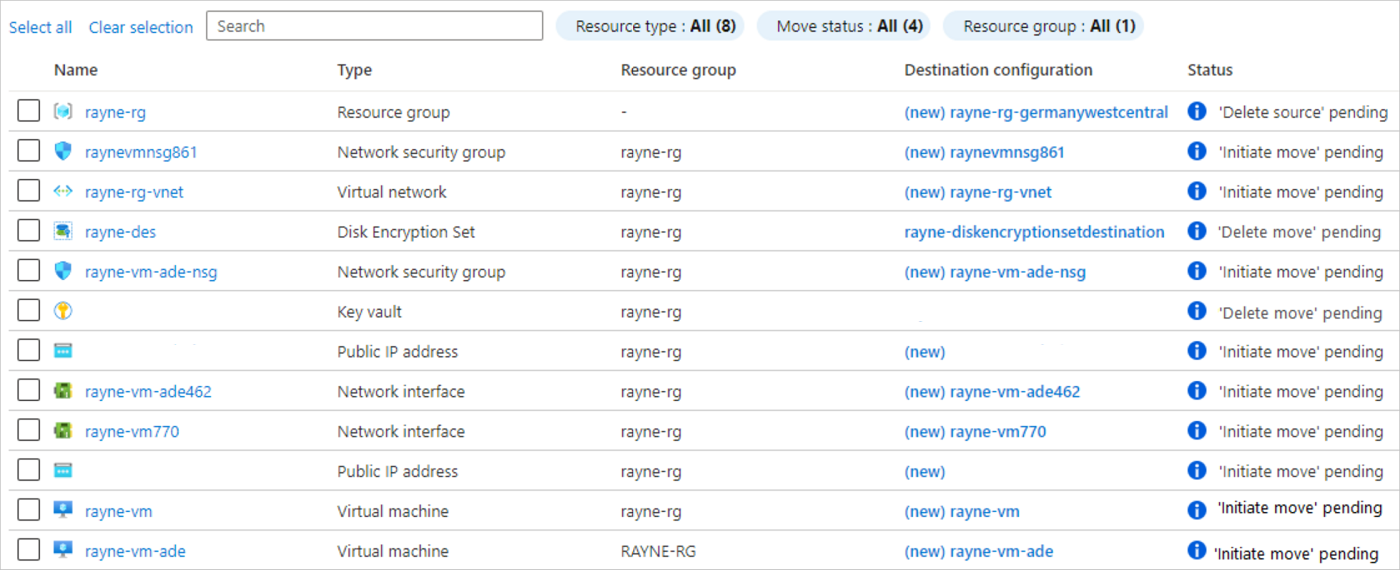 现在,加密资源和源资源组已移动,你可以准备移动当前状态为“准备已挂起”的其他资源。