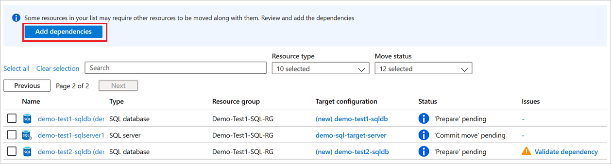 若要解决要移动的依赖资源,请执行以下步骤: