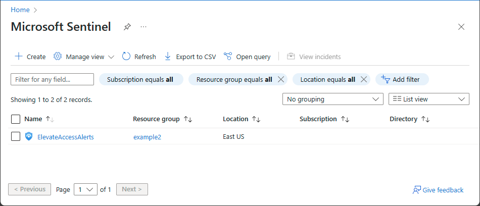 • 使用“事件”页面,并按照“在 Microsoft Sentinel 中导航和调查事件”中的步骤查看提升访问权限的事件