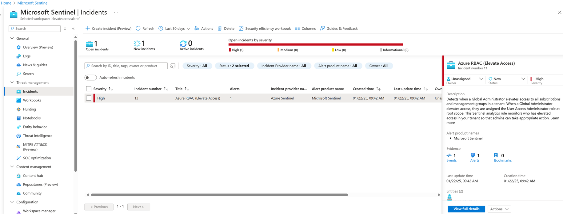 在此步骤中,你可以查看和调查提升访问权限的事件。