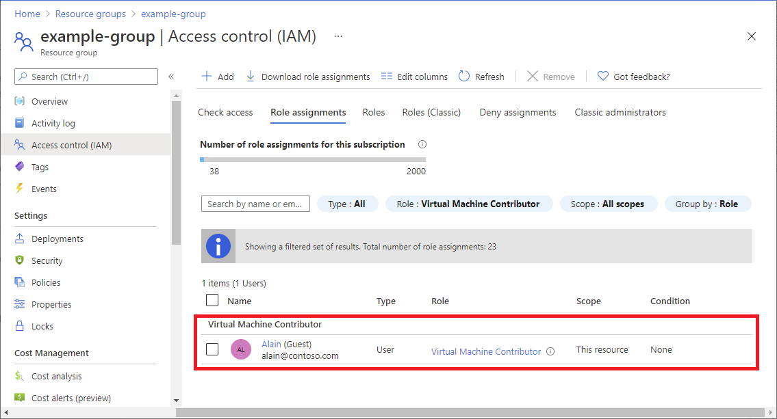 选择“角色分配”选项卡以查看此范围内的角色分配。