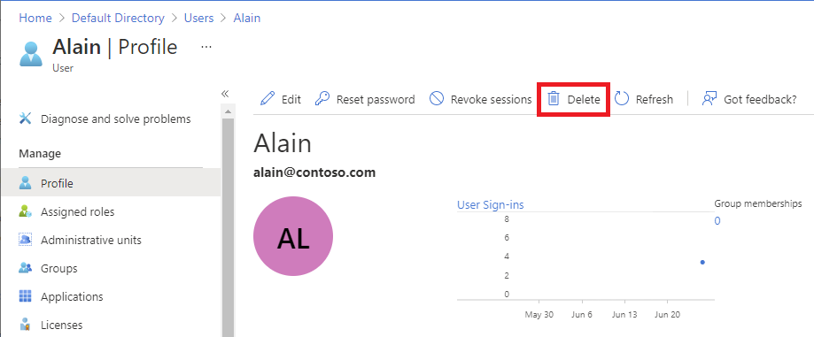 在从目录中删除外部用户之前,应首先删除该外部用户的任何角色分配。 按照以下步骤从目录中删除外部用户。