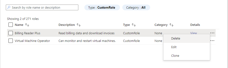 在“类型”筛选器中,选择“CustomRole”,以便仅查看你的自定义角色。