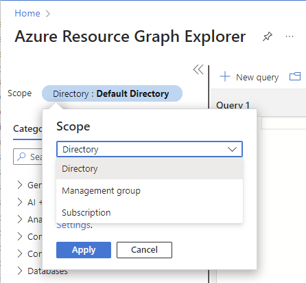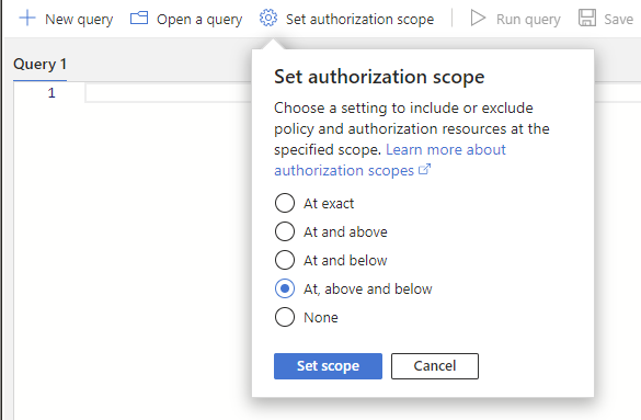 通常将范围设置为“目录”可查询整个租户,但你可以将范围缩小到特定订阅。