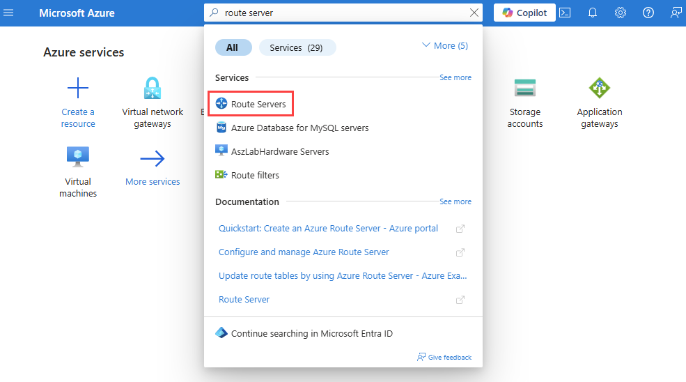 在门户顶部的搜索框中,输入 路由服务器,然后从搜索结果中选择 “路由服务器 ”。