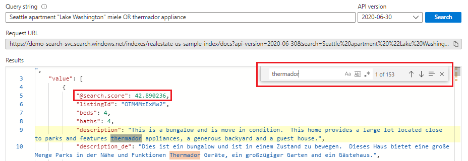 "activities 'outdoor pool' restaurant OR continental breakfast",然后使用 Ctrl-F 在搜索结果中查找术语。查询和筛选表达式使用 Azure AI 搜索实现的语法来表达。 默认为简单语法,但可选择使用完整 Lucene 进行更强大的查询。 筛选表达式以 OData 语法表达。