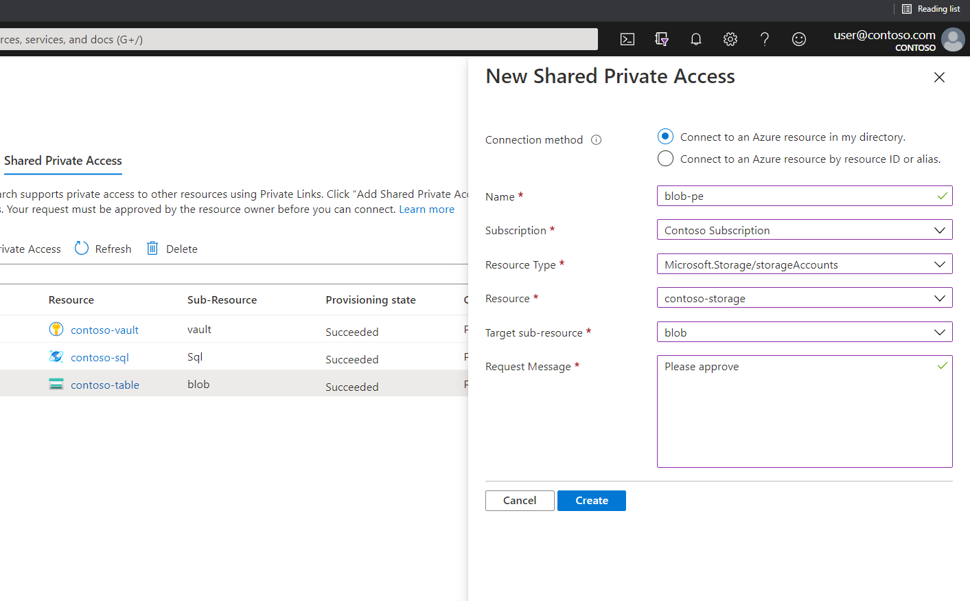 使用 Azure 门户、管理 REST API、Azure CLI 或 Azure PowerShell 创建共享专用链接。