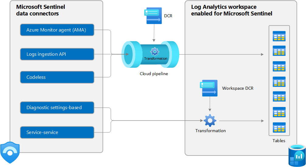 Microsoft Sentinel 使用以下 Azure Monitor 工具来控制自定义数据引入: