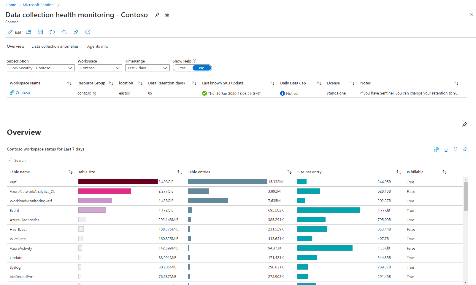 数据收集运行状况监视工作簿:该工作簿提供了其他监视器,可检测异常情况,并提供了有关工作区的数据引入状态的见解。 可以使用该工作簿的逻辑来监视引入数据的一般运行状况,并生成自定义视图和基于规则的警报。