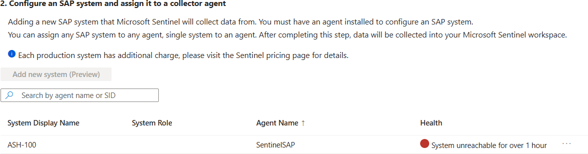 在“配置”>“2.配置 SAP 系统并将其分配给收集器代理” 区域中,查看有关 SAP 系统运行状况的详细信息。