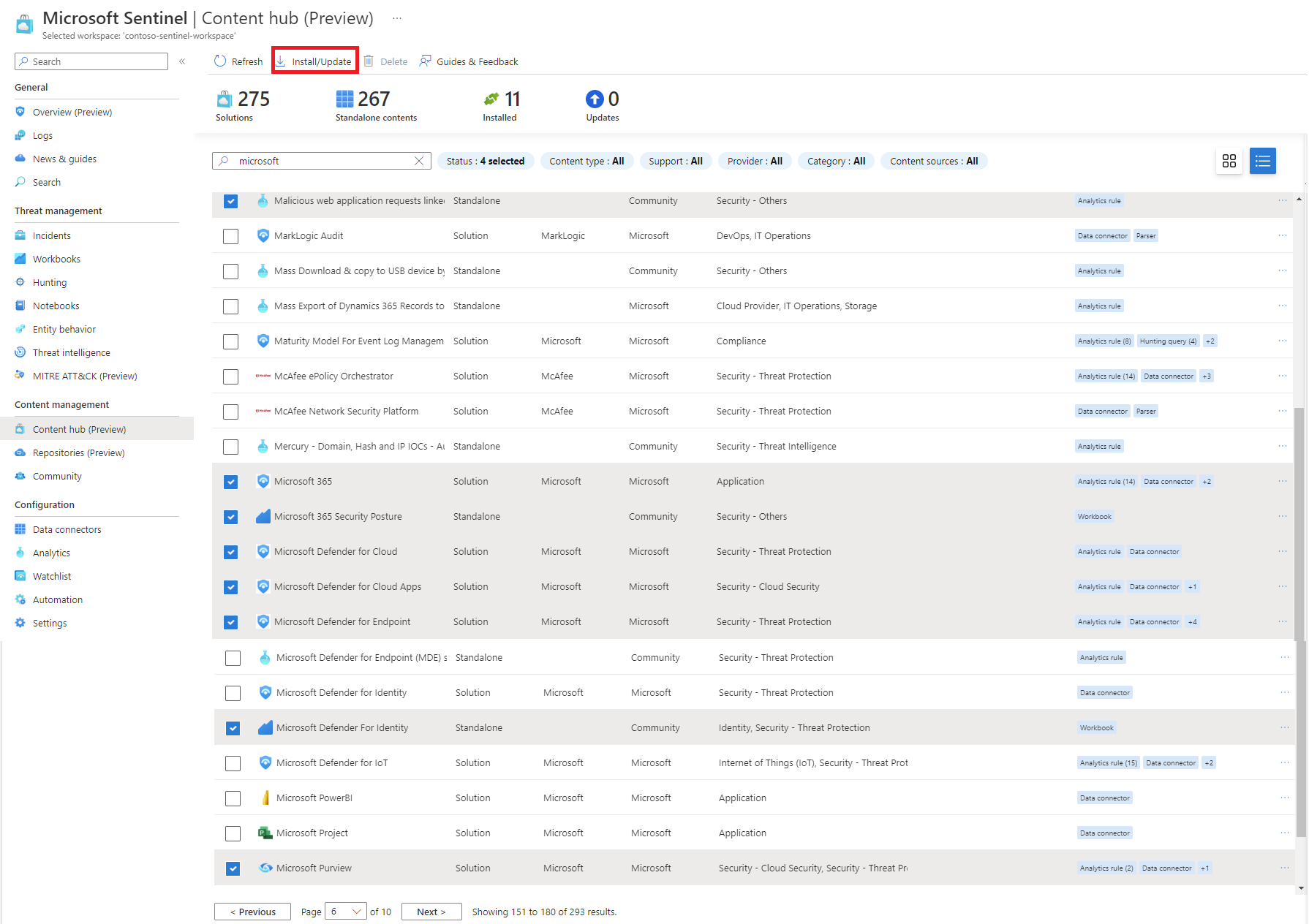 有关详细信息,请参阅 Microsoft Sentinel 的现成内容和解决方案类别。